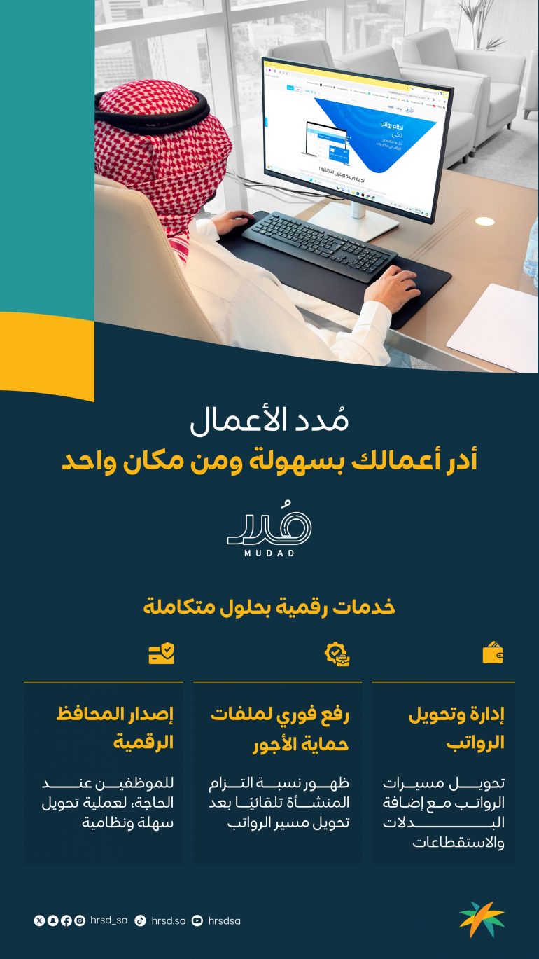 وكان لنظام إدارة وتحويل الرواتب الذي تتيحه “مُدد” دور كبير في تمكين المنشآت من الالتزام. ويتيح النظام للمنشأة الالتزام بكل سهولة عبر تحويل الرواتب بخطوات مختصرة ويسيرة، بالربط المباشر مع شبكة واسعة من المصارف والبنوك المحلية في المملكة.