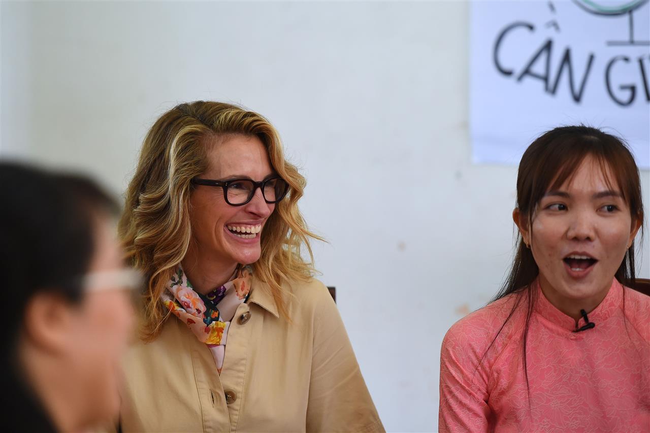 تعليم الفتيات.. أولاً السيدة الأولى السابقة للولايات المتحدة ميشيل أوباما والنجمة السينمائية جوليا روبرتس خلال زيارتها لاحدى مدارس الفتيات في فييتنام في حملة لدعم تعليم الفتيات.