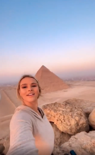 وتسلقت العارضة أحد أهرامات الجيزة بدون الحصول على تصاريح أمنية لذلك.