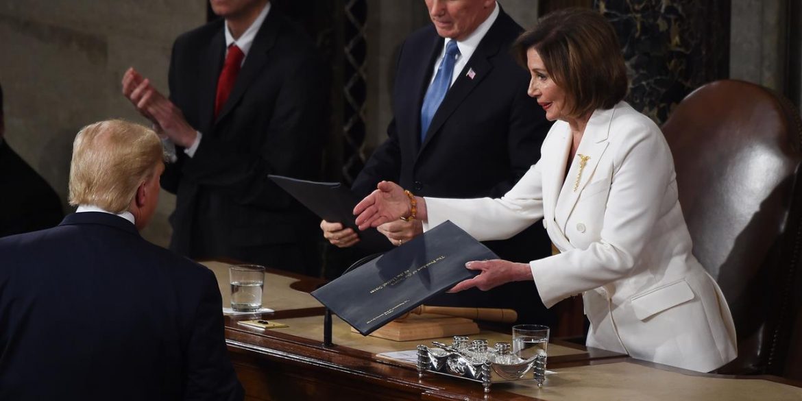 وحتّى قبل بدء إلقاء خطاب حال الاتّحاد التقليدي، كان الانقسام الذي يسود الطبقة السياسيّة في البلاد واضحًا، إذ تجنّب ترامب مصافحة رئيسة مجلس النوّاب الديموقراطيّة نانسي بيلوسي التي قامت بدورها بتمزيق خطاب الرئيس الأميركي ما أن انتهى من إلقائه.