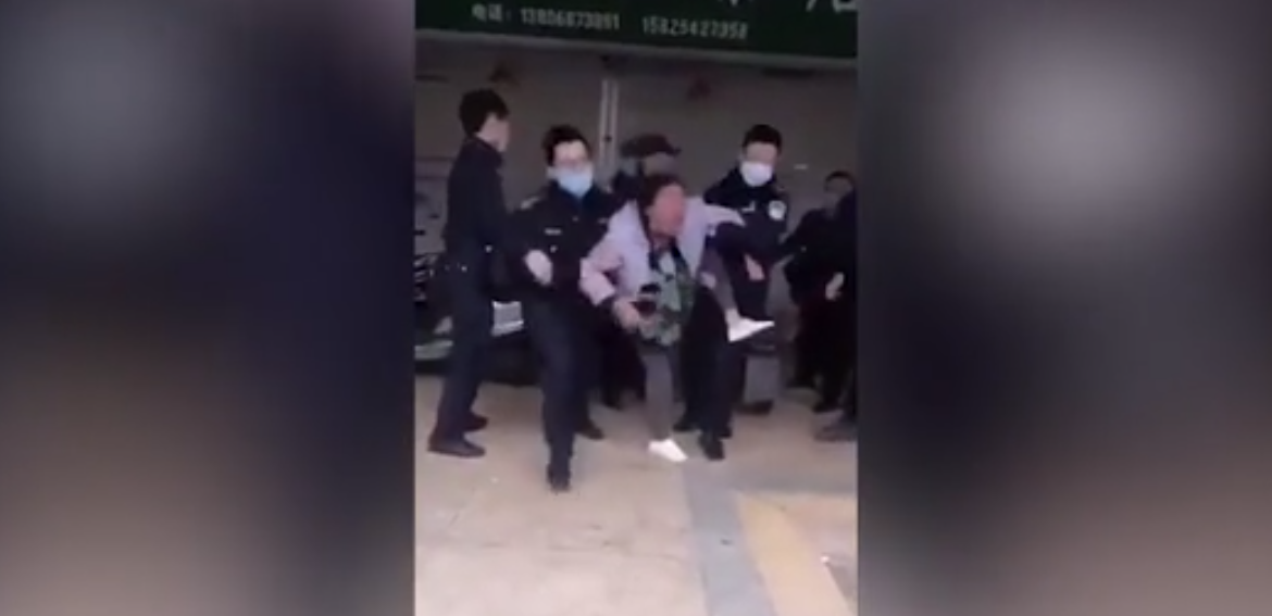 بينما في مقطع فيديو آخر، قيل إنه تم تصويره أيضًا في الصين، شوهدت امرأة تحتجزها عدة ضباط شرطة وتكافح ضدهم.