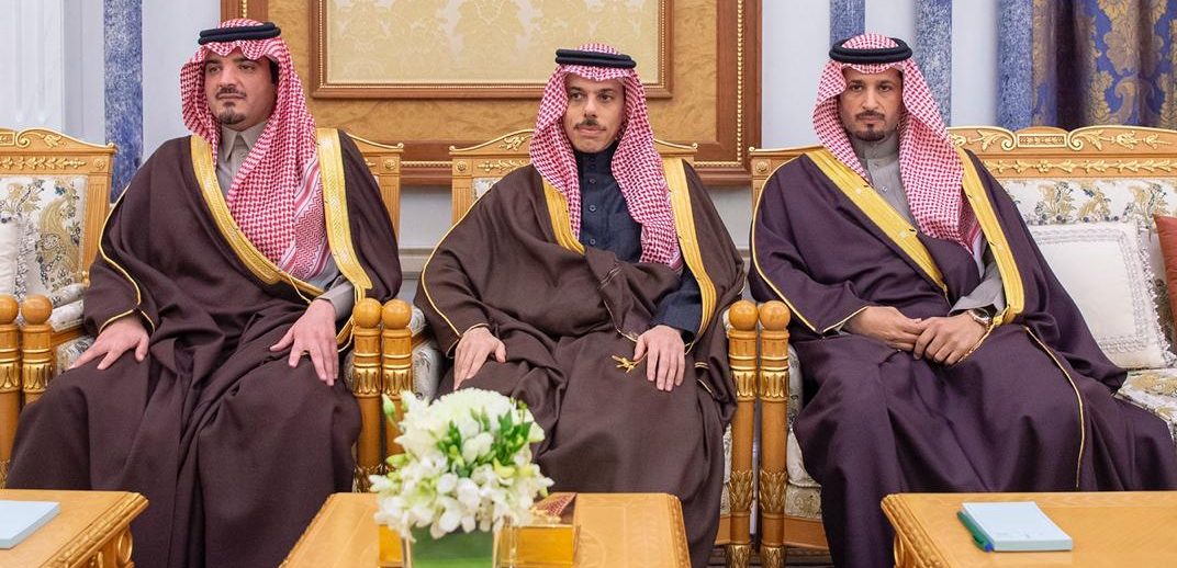حضر الاستقبال، صاحب السمو الملكي الأمير عبد العزيز بن سعود بن نايف بن عبد العزيز وزير الداخلية، وصاحب السمو الأمير فيصل بن فرحان بن عبد الله وزير الخارجية، ومساعد السكرتير الخاص لخادم الحرمين الشريفين تميم السالم.