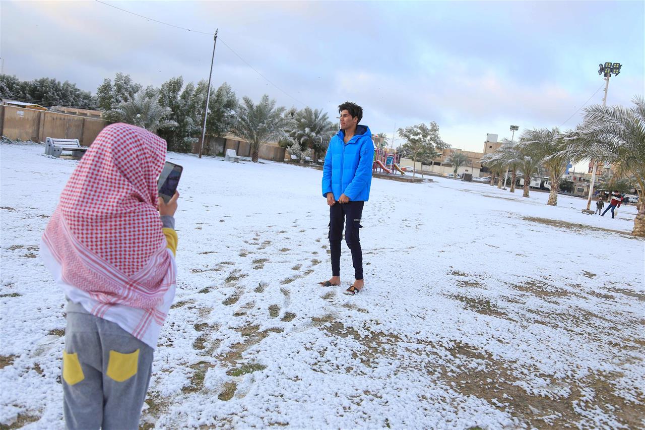 وقال عامر الجابري مدير إعلام الأنواء الجوية العراقية لوكالة فرانس برس “تساقط الثلوج قد يستمر حتى يوم غد “الأربعاء” في أجواء شديدة البرودة، ونتوقع انحسار الكتلة مساء الاربعاء وبعدها تبدأ درجات الحرارة بالارتفاع”، مضيفاً أن “المنخفض الجوي جاء من أوروبا”.