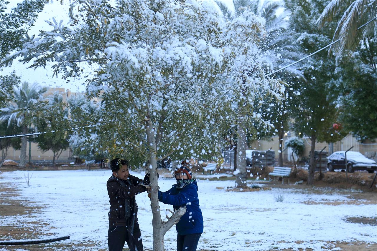وأوقف سائقو السيارات آلياتهم بالقرب من حدائق غطتّها الثلوج بالكامل وعمد بعضهم إلى التقاط الصور مع أطفالهم، بينما تدنّت درجات الحرارة إلى الصفر.