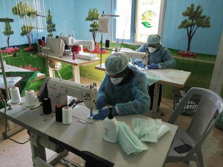 بدأ المركز المجتمعي التابع لمجمع عيادات مركز الملك سلمان للإغاثة والأعمال الإنسانية في مخيم الزعتري للاجئين السوريين بالأردن بتنفيذ المرحلة الأولى من مبادرة (معا نقف سويا) والهادفة لصناعة أدوات الحماية الشخصية من فيروس كورونا المستجد من (كمامات وواقيات للرأس) والتي سيتم توزيعها على سكان المخيم.