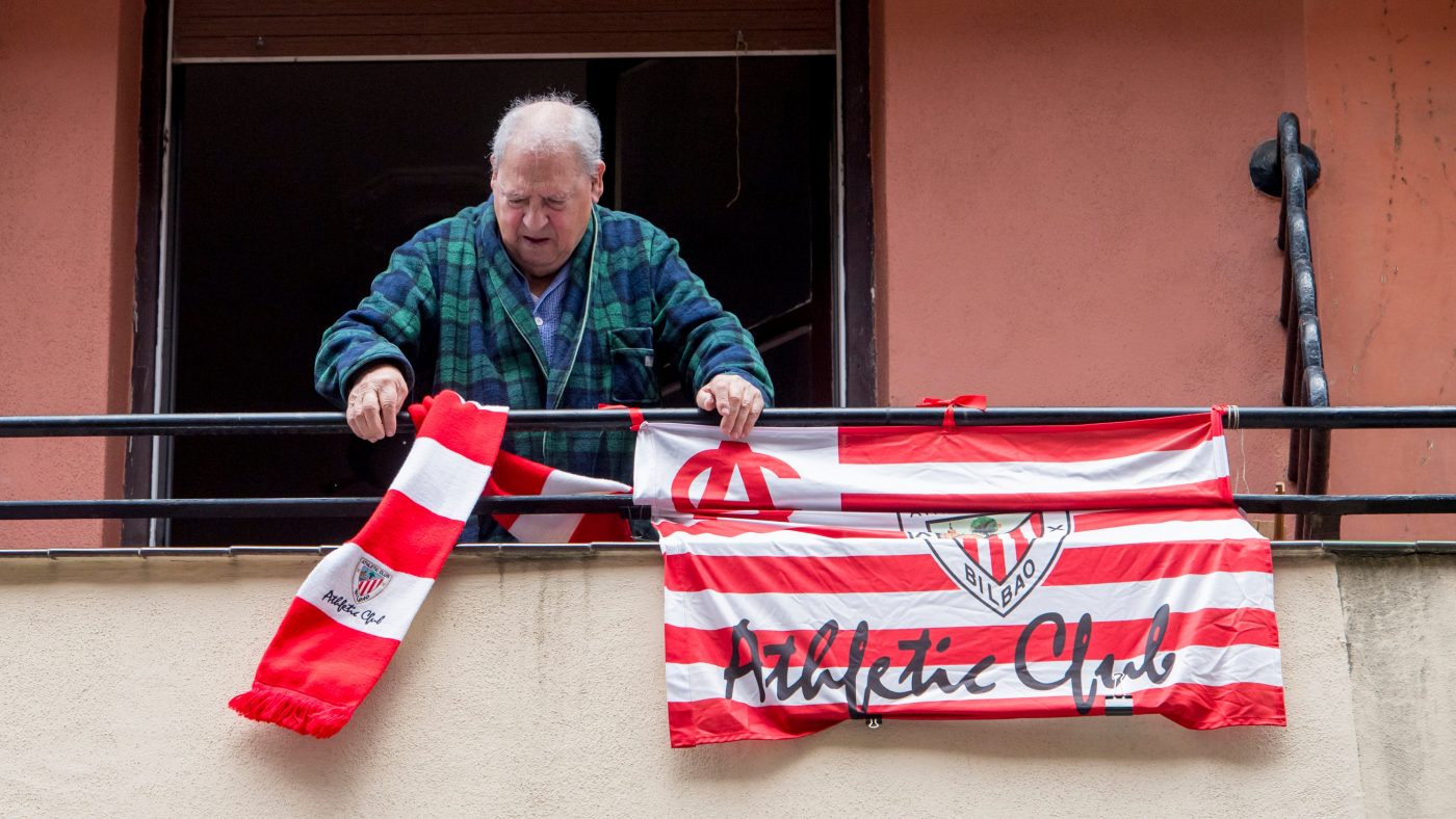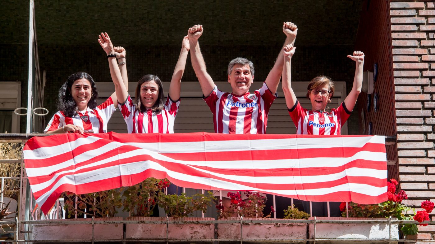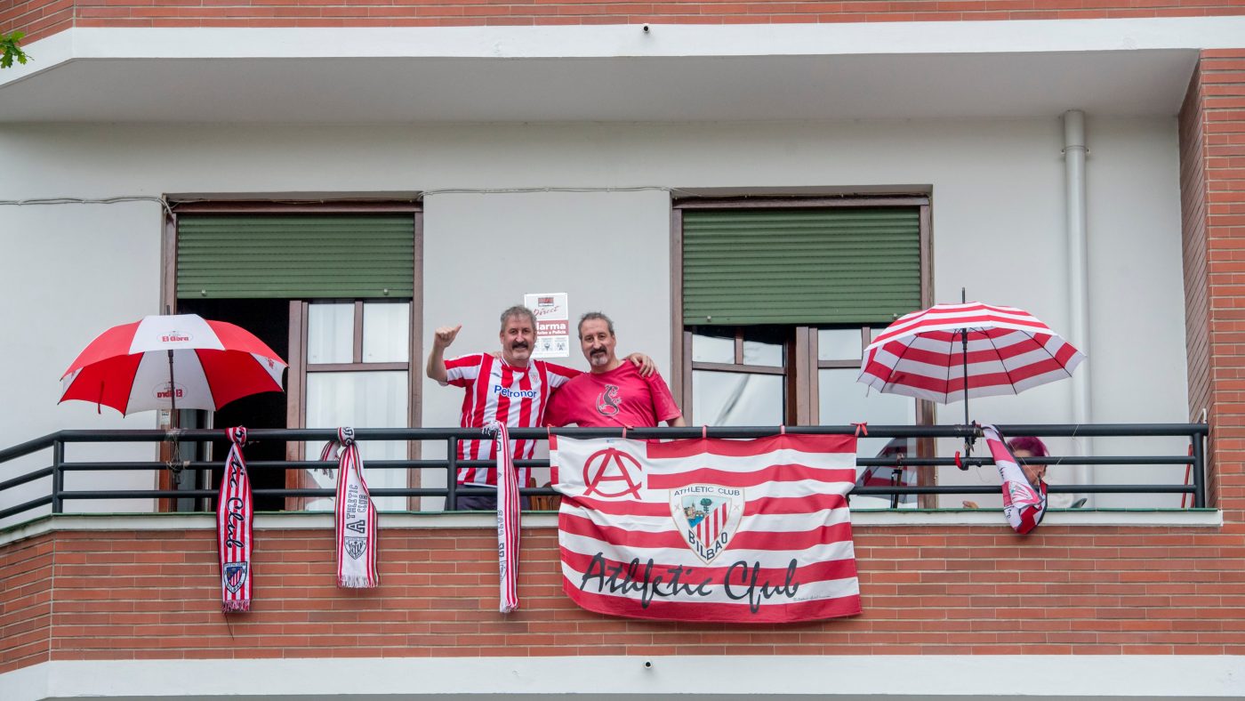 جماهير بلا مباراة!! جماهير أتلتيك بيلياو وريال سوسيداد في نهائي كأس ملك إسبانيا يشجعون من البلكونة من دون مباراة، وكان من المفترض أن يحتضن إقليم “الباسك” مواجهة الغريمين، لكن كورونا تسبب في التأجيل. (المصدر: سوبر كورة)