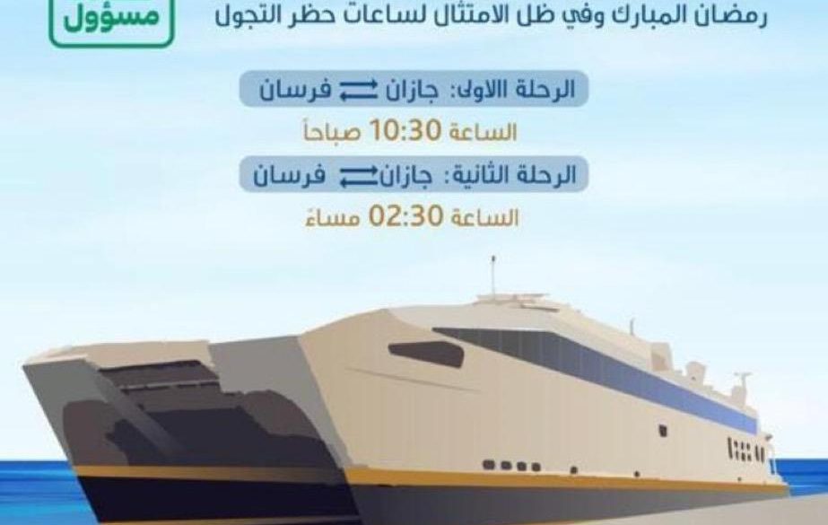 وبينت الهيئة أنها خصصت أربع رحلات يوميا، حيث تغادر الرحليتن الأولى والثانية في تمام الساعة العاشرة والنصف صباحاً بالاتجاهين “جيزان فرسان ـ فرسان جازان” في نفس الموعد، فيما تنطلق الرحلتين الأخيرتين بنفس الآلية عند الساعة الثانية والنصف ظهراً من ميناء جازان إلى ميناء فرسان، ومن ميناء فرسان إلى ميناء جازان.
