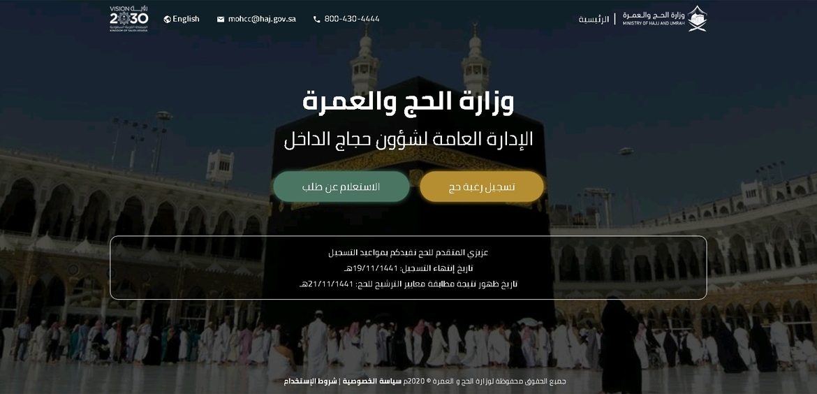 وأوضحت الوزارة في تغريدة على موقع “تويتر” أنه ابتداء من اليوم وحتى تاريخ 19 ذو القعدة 1441 هـ سيتمكن الراغبين في أداء فريضة الحج من غير السعوديين المقيمين داخل المملكة من التسجيل وفق الشروط الصحية والتنظيمية عبر رابط الوزارة: https://localhaj.haj.gov.sa/LHB/pages/home.xhtml?dswid=581