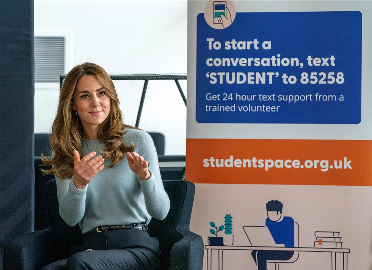 الدوقة.. والكمامة دوقة كامبريدج، تضع كمامة وجهها على قدميها في أثناء زيارتها لجامعة ديربي، وسط إنجلترا.