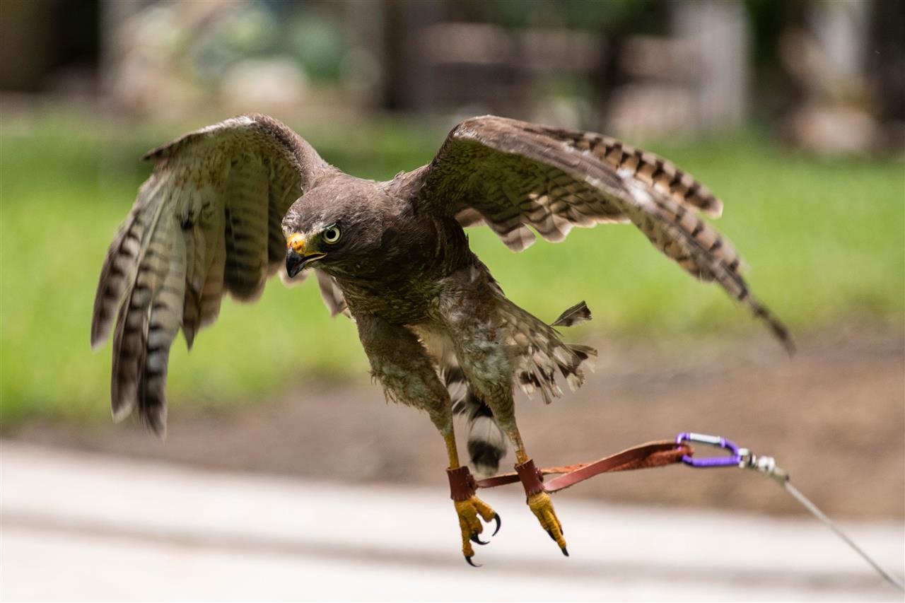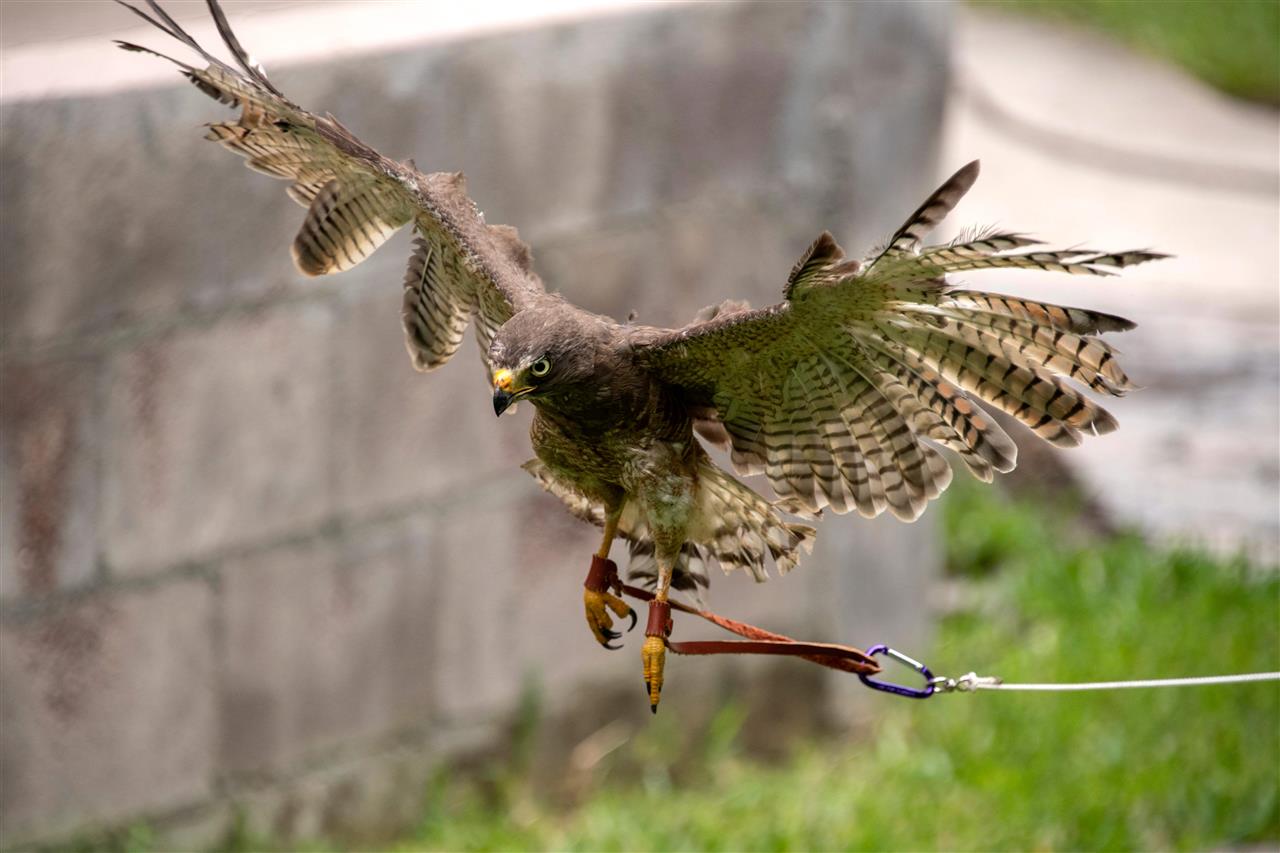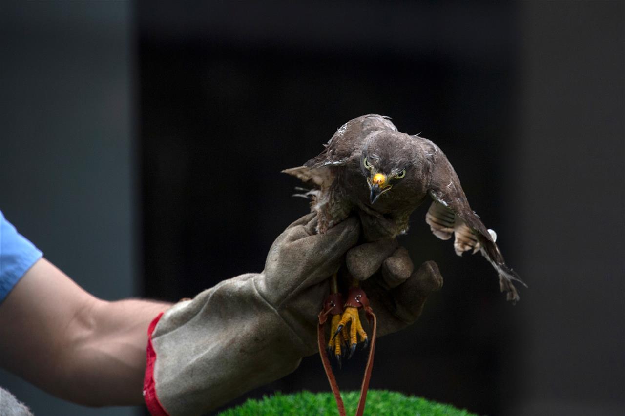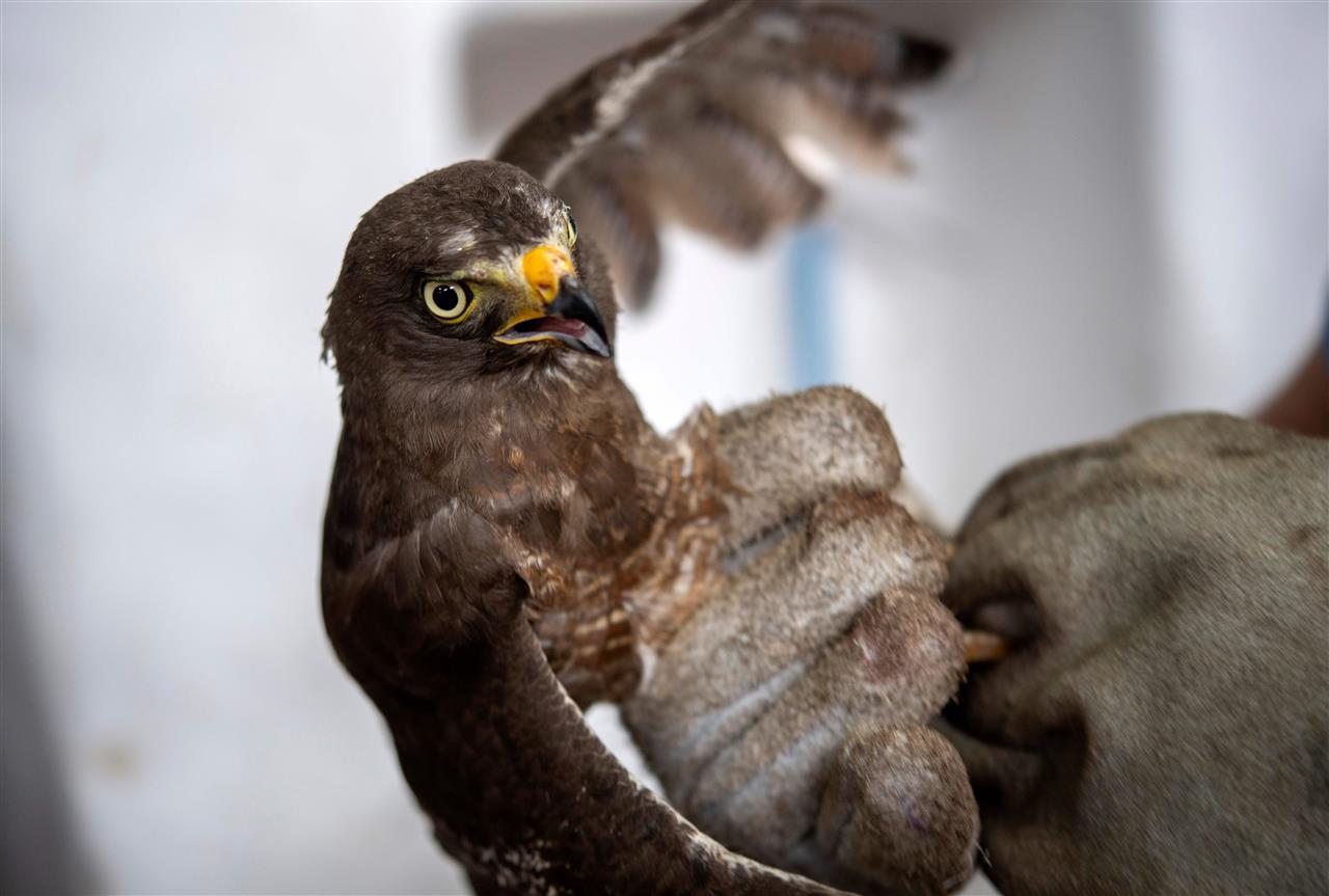 عودة الصقر صقر يحلق من جديد بعد اكتمال ريشه في عيادة للعناية بالحياة الفطرية بالسلفادور وإطلاقه من قبل الطبيب الذي اعتنى به.
