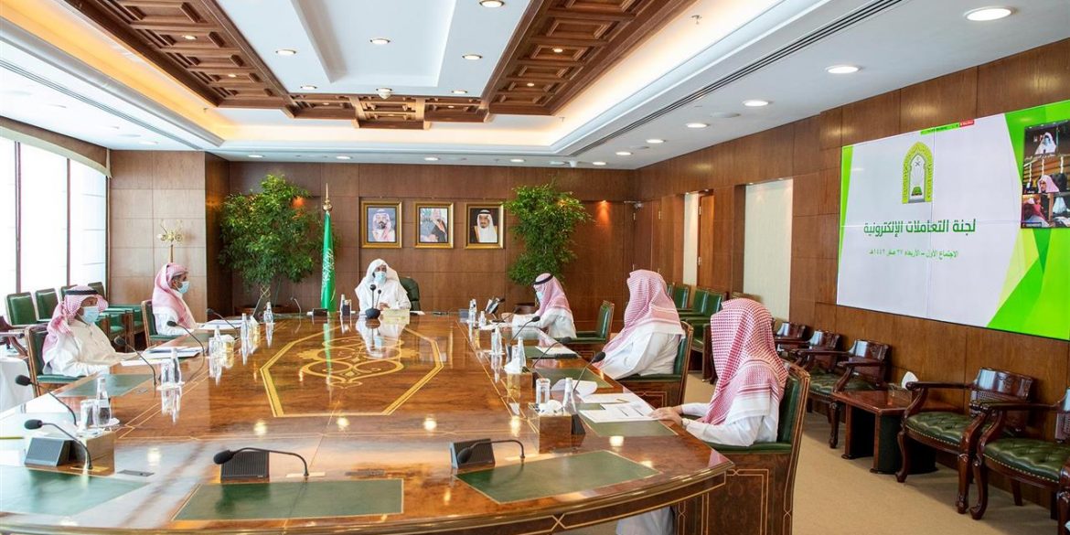 رأس وزير الشؤون الإسلامية والدعوة والإرشاد الشيخ الدكتور عبداللطيف بن عبدالعزيز آل الشيخ، بمقر الوزارة اليوم، الاجتماع الافتراضي الأول للجنة التعاملات الإلكترونية، بحضور نائب وزير الشئون الإسلامية نائب رئيس اللجنة الدكتور يوسف بن محمد بن سعيد وأعضاء اللجنة.