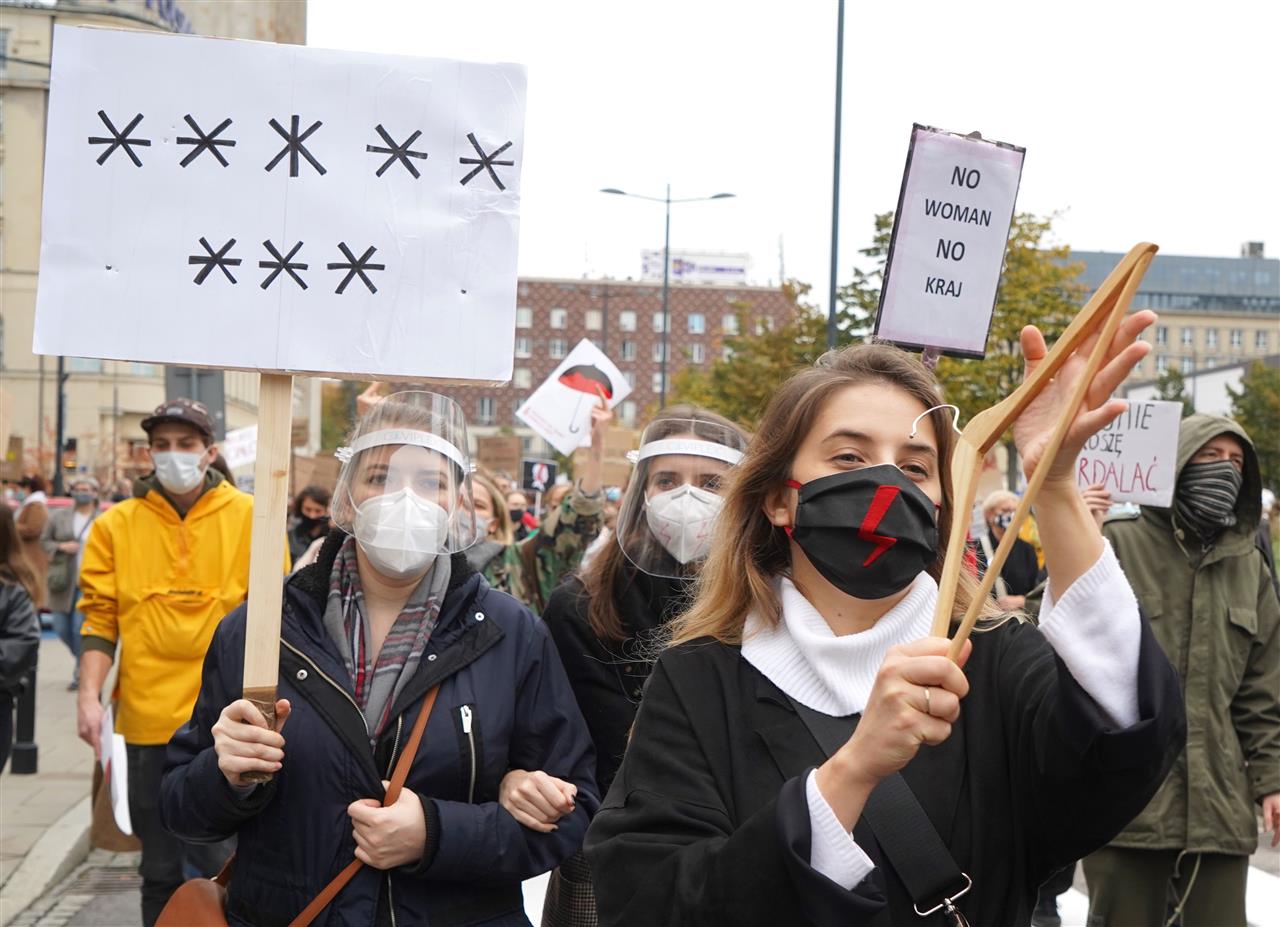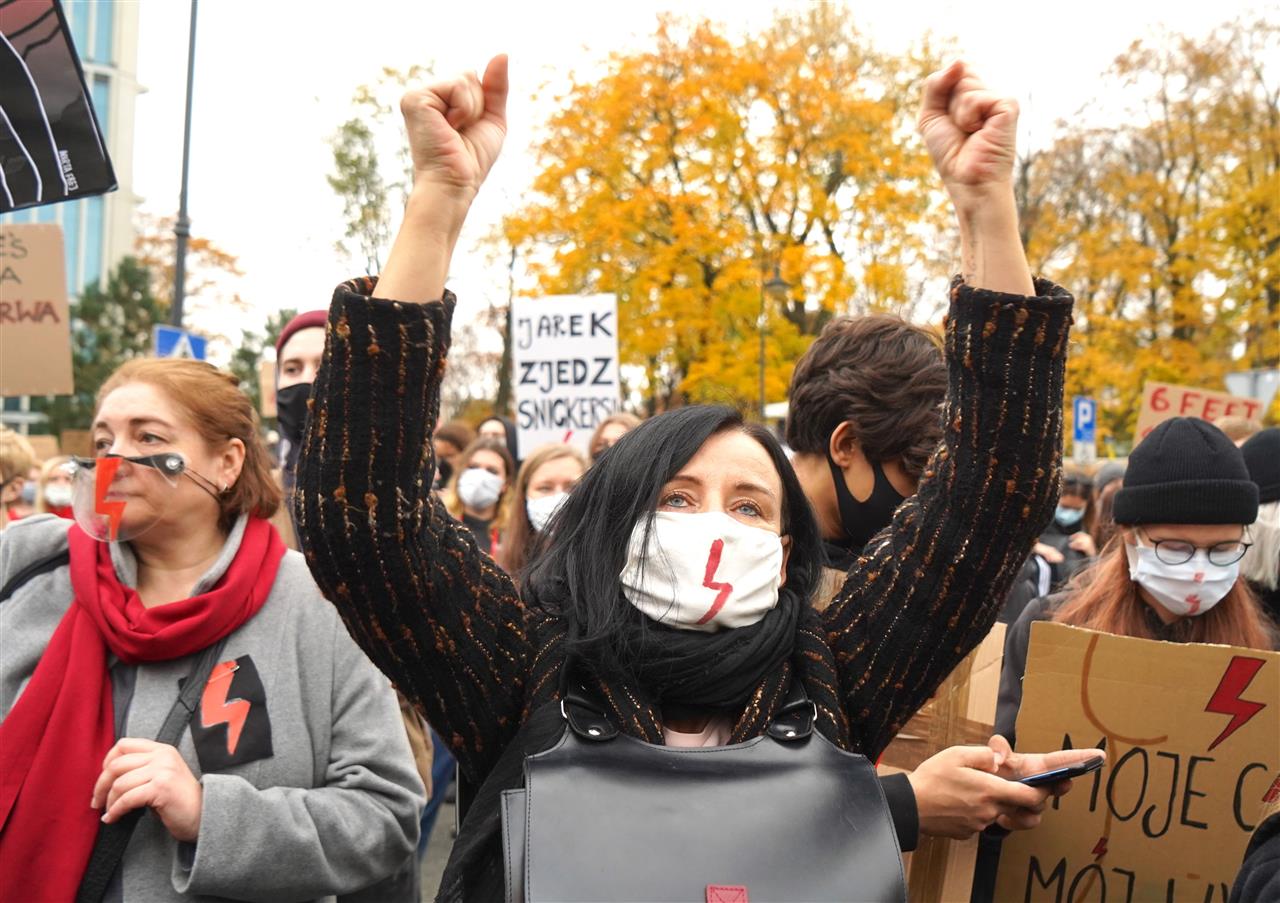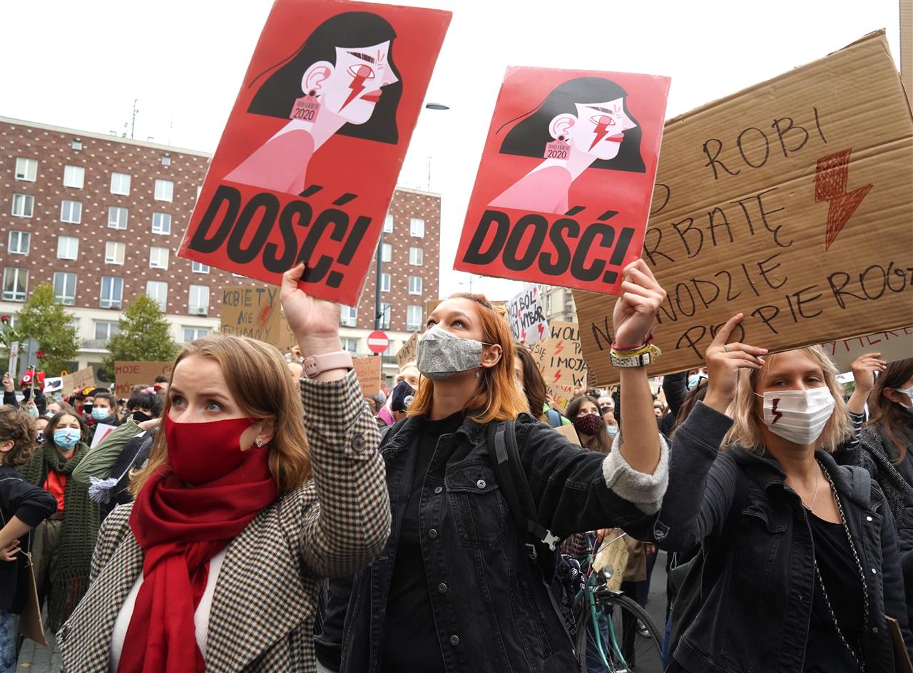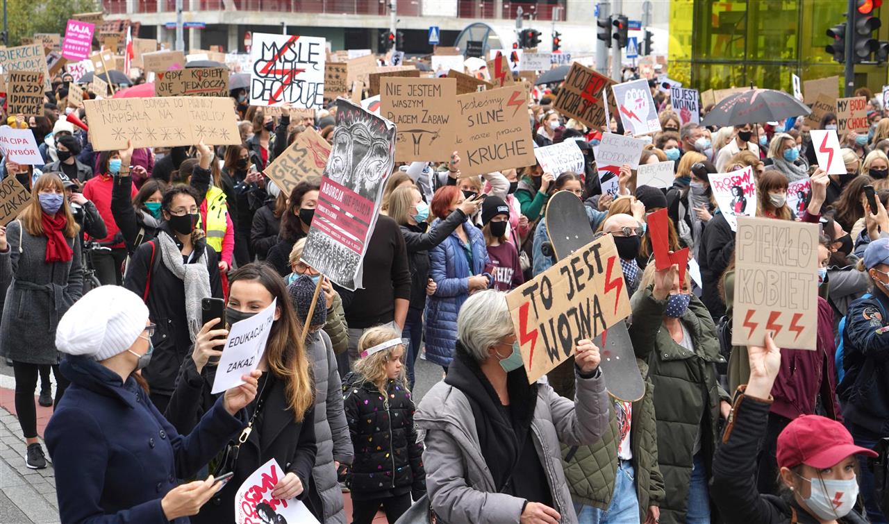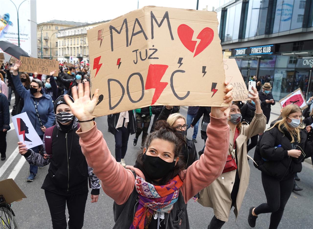 بولندا امرأة مئات البولنديات اللاتي خرجن في مظاهرات احتجاجية، لليوم السابع على التوالي، ضد تشديد قانون الإجهاض المقيد في بولندا. ورفعت النساء لافتات احتجاجية كتب عليها “بولندا امرأة”.