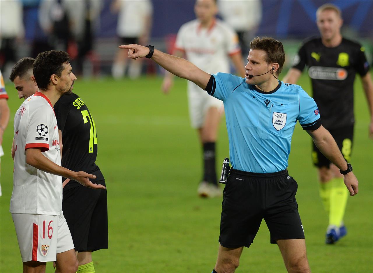 واضطر جولن لوبيتيغي إلى استبدال كونديه في الدقيقة 34 خوفا من طرده، كما دفع بالارجنتيني ماركوس أكونيا مكان سيرجيو إسكوديرو وقلص الدولي الكرواتي السابق إيفان راكيتيتش الفارق بضربة رأسية إثر تمريرة عرضية من جوان جوردان “41” وتلقى اشبيلية ضربة موجعة بطرد قائده خيسوس نافاس في الدقيقة الرابعة من الوقت بدل الضائع من الشوط الأول.