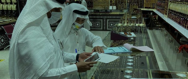 تواصل الفرق الرقابية بوزارة التجارة ووزارة الموارد البشرية والتنمية الاجتماعية والهيئة العامة للزكاة والدخل تنفيذ حملة رقابية مشتركة تستهدف محال ومشاغل المعادن الثمينة والأحجار الكريمة (الذهب والمجوهرات) بمدينة الرياض وذلك للتحقق من نظامية أعمال المنشآت.