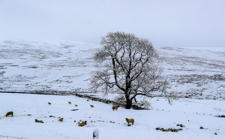 البياض يغطي بريطانيا الثلوج تغطي الأشجار في بلدة نيوبي هيد بشمال يوركشير في بريطانيا بعد تحول اجزاء كبيرة من البلد إلى لوحة طبيعية رائعة الجمال