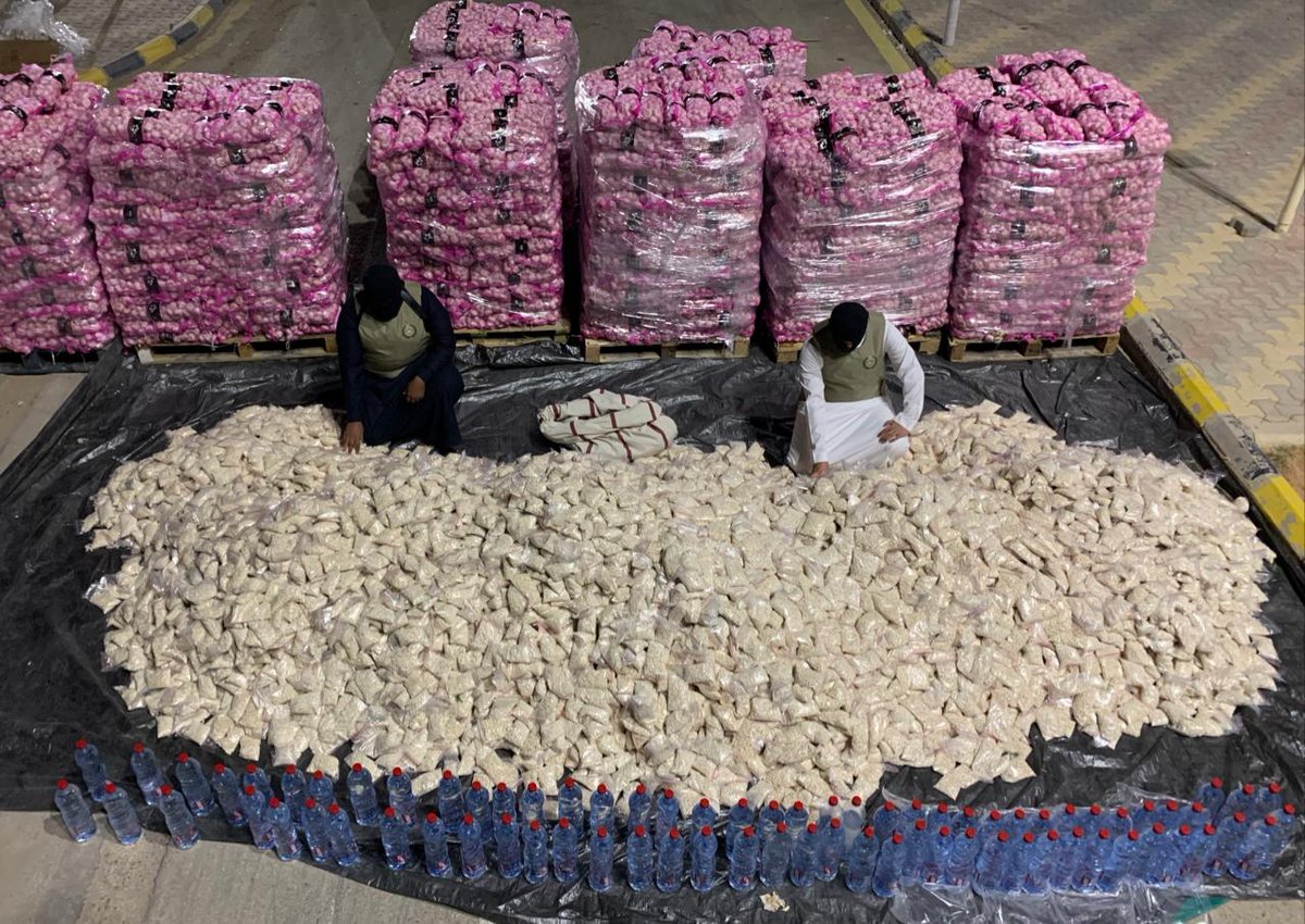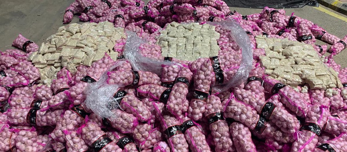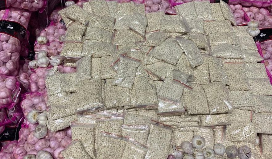 أحبط رجال مكافحة المخدرات محاولة تهريب أكثر من 11 مليون حبة من قرص إمفيتامين مخدر مخبأة داخل شحنة “ثوم”.