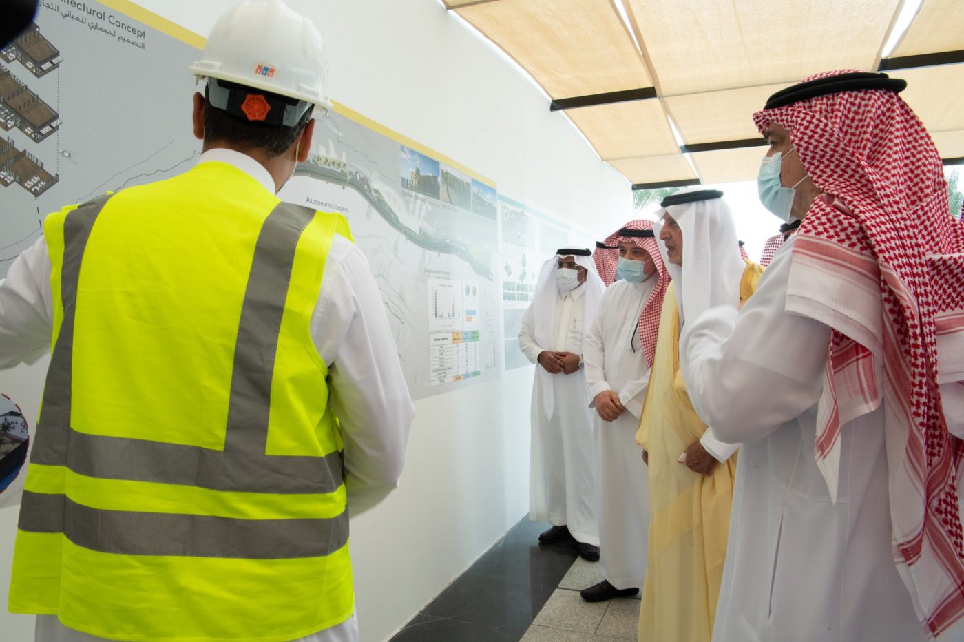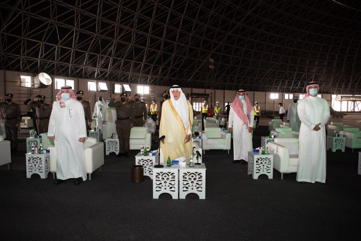 واستهل الأمير خالد الفيصل جولته التفقدية بمشروع قبة جدة، مستمعًا إلى شرح عن المشروع الذي يعدّ أكبر قبة متصلة وأكبر قبة فراغية كروية في العالم تم تنفيذها على مساحة 308 آلاف متر مربع، لتكون مركزًا لاستضافة جميع المعارض والمؤتمرات والفعاليات المحلية والعالمية، وتبلغ مساحة الصالة 34.618 م2، فيما يصل ارتفاعها إلى 46 م، وتتسع مواقف المشروع لـ 5200 مركبة.