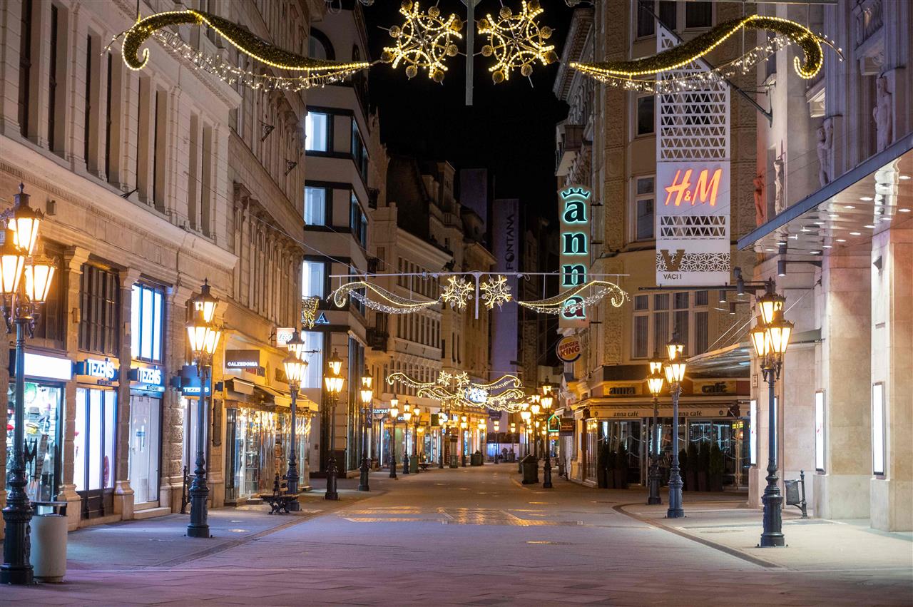 على الرغم من الاضاءة والزينة المصاحبة لاحتفالات رأس السنة في أحد أشهر شوارع العاصمة المجرية بودابست إلا أن الشارع خلا من المارة حيث يستعد سكان المجر للاحتفال بالعام الجديد 2021 في منازلهم ، وسط انتشار فيروس كورونا المستجد. منذ 11 نوفمبر 20202 تخضع البلاد لحالة إغلاق جزئي لمدة شهرين بهدف كبح انتشار فيروس كورونا.