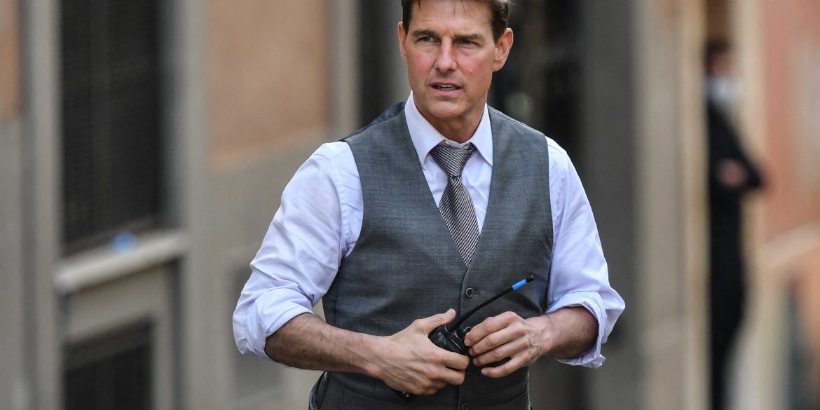 US actor Tom Cruise is pictured during the filming of "Mission Impossible : Lybra" on October 6, 2020 in Rome. (Photo by Alberto PIZZOLI / AFP)