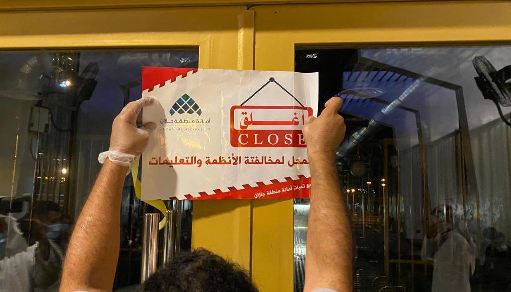 نفذت أمانة منطقة جازان وبلدياتها المرتبطة بها الأسبوع الماضي، 4976 جولة رقابية على المطاعم والمقاهي والمراكز التجارية بمدينة جيزان ومحافظات المنطقة لمتابعة الالتزام بالإجراءات الاحترازية ضد فايروس كورونا.