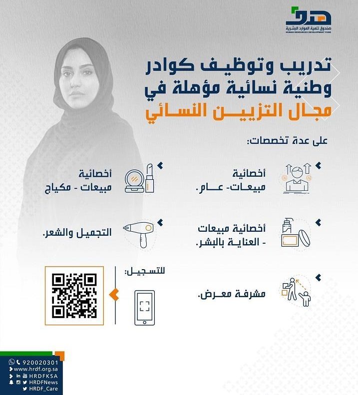 أكد صندوق تنمية الموارد البشرية “هدف”، أن برنامج تأهيل وتدريب الباحثات عن عمل في نشاط التزيين النسائي يستهدف 5 مهن هي: أخصائية مبيعات “عام”، مشرفة معرض، أخصائية مبيعات “مكياج”، أخصائية مبيعات العناية بالبشرة، والتجميل والشعر.
