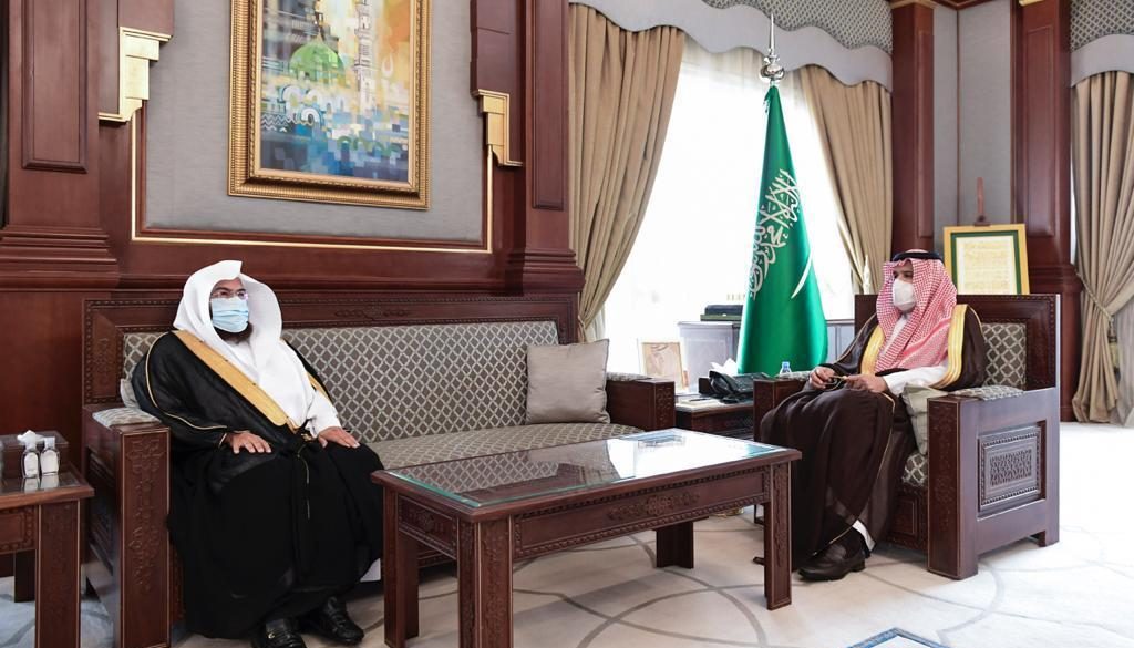 التقى صاحب السمو الملكي الأمير فيصل بن سلمان بن عبدالعزيز أمير منطقة المدينة المنورة، الرئيس العام لشؤون المسجد الحرام والمسجد النبوي الشيخ الدكتور عبدالرحمن السديس، يُرافقه وكيل الرئيس العام لشؤون المسجد النبوي الدكتور محمد الخضيري، ووكلاء رئاسة شئون المسجد النبوي المعينين حديثاً: عبدالعزيز الأيوبي، والدكتور نبيل اللحيدان.