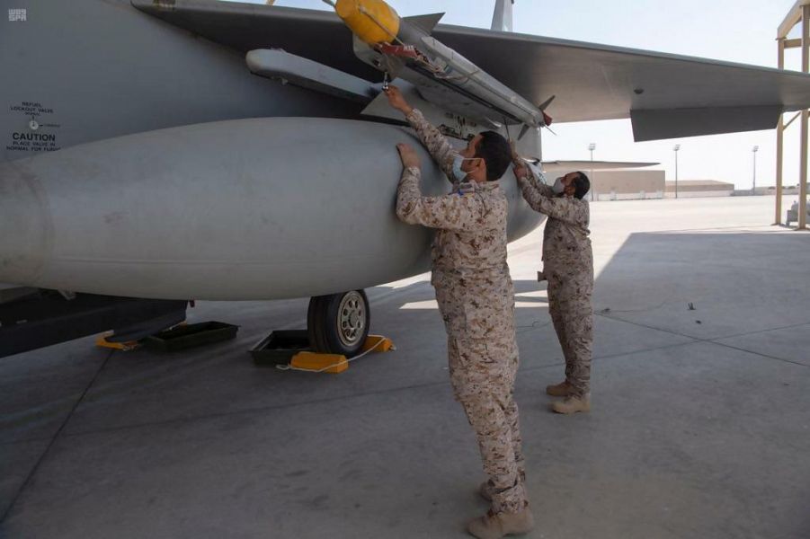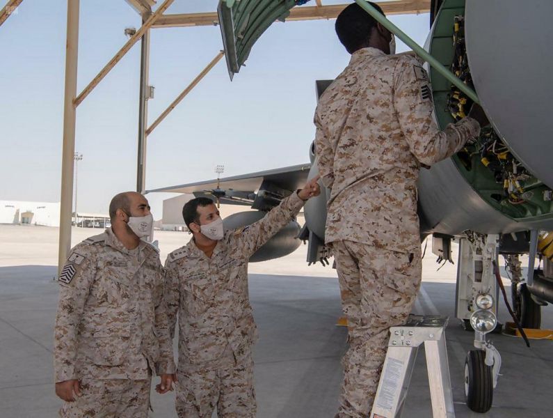 من جانبه قال الرائد مهندس صالح بن أحمد الشهري أن الأطقم الفنيه تعمل على تجهيز وصيانة وتسليح منظومة (ف -15 سي / إي) متّبعين أعلى معايير الجودة والسلامة مما يضمن تأدية الأطقم الجوية مهامها العملياتية على أكمل وجه.