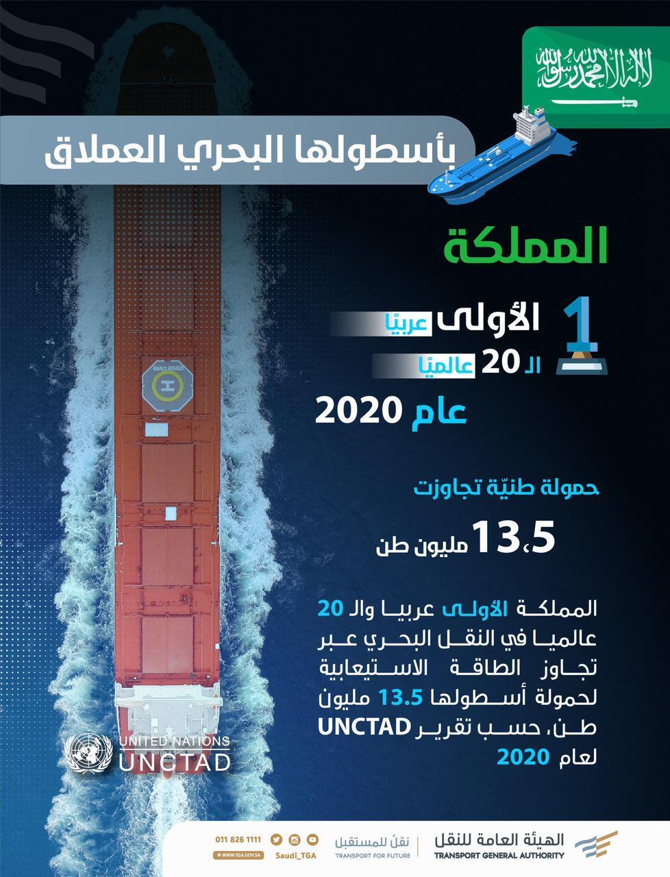 وأعربت الهيئة العامة للنقل عن اعتزازها بحصول المملكة على المرتبة الأولى عربيًا للعام الثاني على التوالي وتقدمها ثلاث مراتب عالميًا لتحتل المرتبة العشرين في صناعة النقل البحري، موضحة أن تحقيق هذه المكانة جاء من خلال تجاوز الطاقة الاستيعابية للحمولة الطنيّة للأسطول البحري السعودي 13.5 مليون طن.