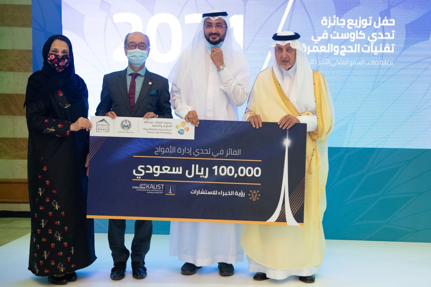 وتبلغ قيمة مسابقة تحدي جامعة الملك عبدالله للعلوم والتقنية مليون و300 ألف ريال، موزعة للفائز بالجائزة الكبرى وقيمتها مليون ريال “تحدي الأوضاع المحيطة ومساندة القرارات التنبؤية”، وفي تحدي الرعاية الصحية فازت منصة صفا الرقمية للإشراف على صحة الحجاج والمعتمرين، وقيمة الجائزة 100 ألف ريال، وفي تحدي إدارة الأفواج فازت مبادرة إدارة الأفواج من خلال منصة الحج الذكية وقيمة الجائزة 100 ألف ريال، فيما فازت في تحدي النقل والمواصلات مبادرة تعزيز تنقلات الحجاج والمعتمرين من خلال الذكاء الاصطناعي وقيمتها 100 ألف ريال.