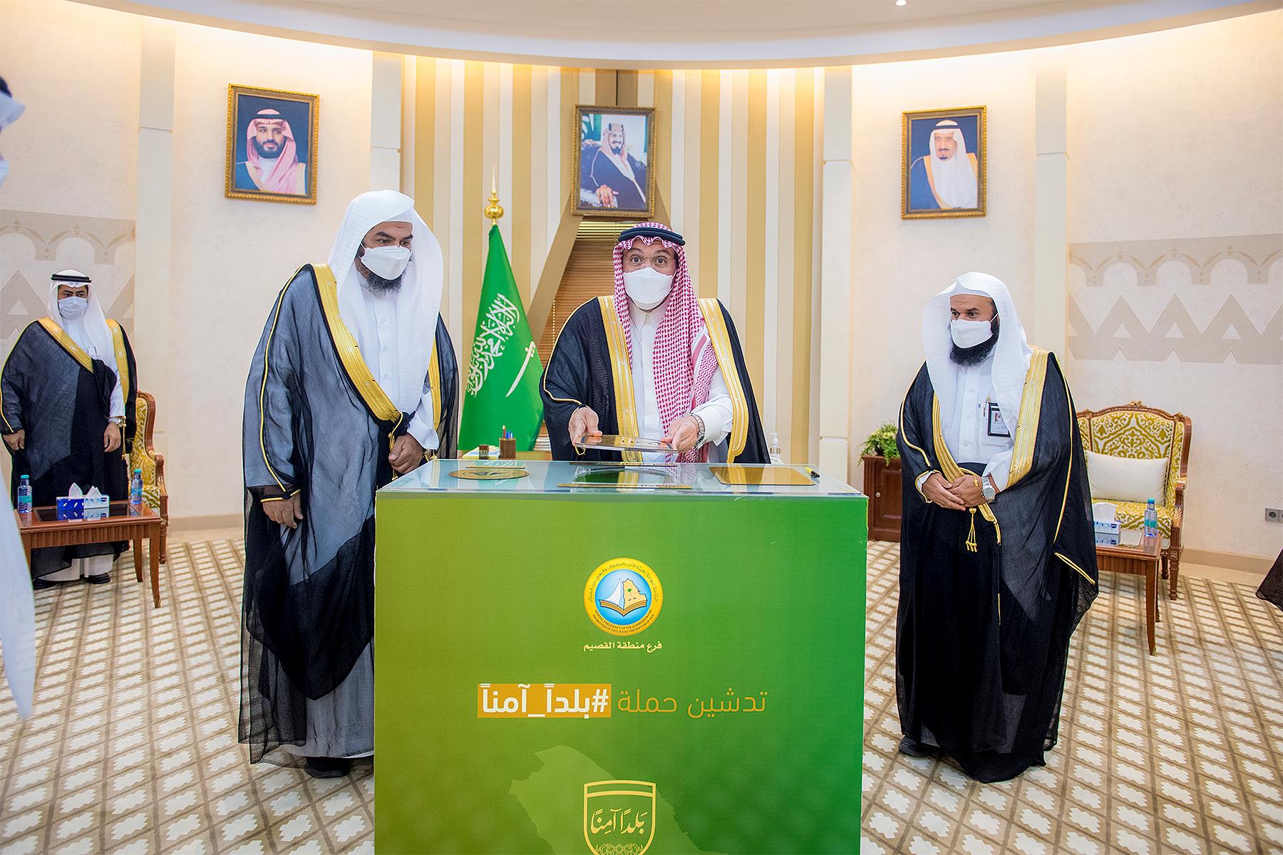 من جهة أخرى، أطلق صاحب السمو الملكي الأمير الدكتور فيصل بن مشعل بن سعود بن عبدالعزيز أمير منطقة القصيم في مكتبه بالإمارة اليوم، أعمال حملة “ربِّ اجعل هذا البلد آمناً” تحت شعار “فكرٌ آمن.. لوطنٍ آمن”.