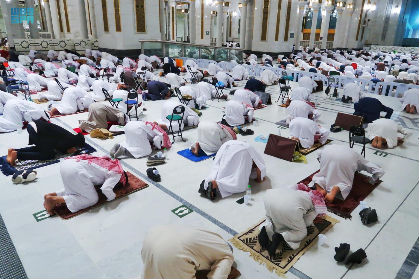 وكثفت الرئاسة العامة لشؤون المسجد الحرام والمسجد النبوي عمليات التطهير والتعقيم والتشغيل, إضافة إلى توزيع عبوات ماء زمزم ذات الاستخدام الواحد على المصليات والمطاف والساحات والزوار بشكل عام.