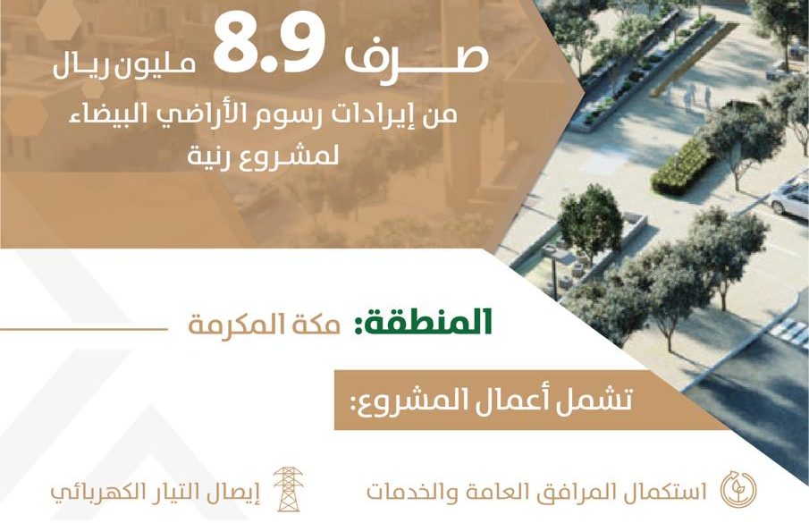 أعلن برنامج “الأراضي البيضاء” عن صرف 8,9 ملايين ريال لاستكمال تنفيذ وإيصال خدمات البنية التحتية في مشروع رنية بمكة المكرمة، مبينًا أن هذا المبلغ يمثل جزءاً من إيرادات البرنامج التي جرى تحصيلها من الرسوم المفروضة على الأراضي البيضاء داخل النطاق العمراني في المدن الخاضعة للنظام في مرحلته الأولى.