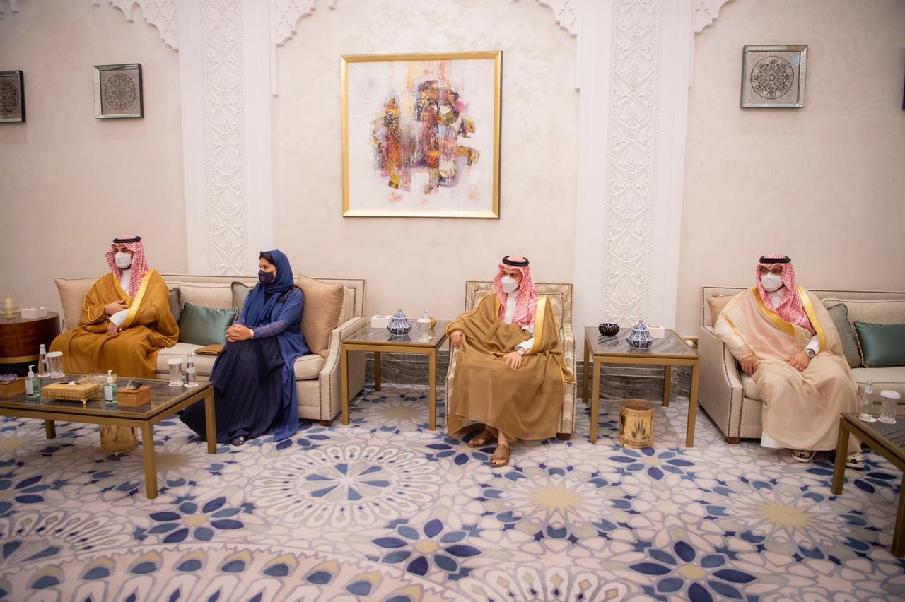 حضر اللقاء صاحب السمو الملكي الأمير خالد بن سلمان بن عبدالعزيز نائب وزير الدفاع، وصاحبة السمو الملكي الأميرة ريما بنت بندر بن سلطان بن عبدالعزيز سفيرة خادم الحرمين الشريفين لدى الولايات المتحدة الأميركية، وصاحب السمو الأمير فيصل بن فرحان بن عبدالله وزير الخارجية، وسفير خادم الحرمين الشريفين لدى الجمهورية اليمنية محمد بن سعيد آل جابر.