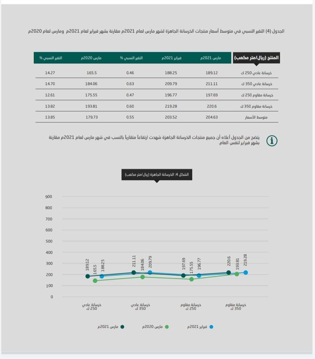 أصدرت الهيئة السعودية للمقاولين تقريراً لها يتضمن إحصاءات أسعار مواد البناء لشهر مارس 2021م ، حيث ﺳـــﺠﻠﺖ ﻣﻨﺘﺠﺎﺕ ﺍﻟﺤﺪﻳﺪ ﺍﻧﺨﻔﺎﺿﺎً ﺟﻤﺎﻋﻴﺎً ﻓﻲ ﺍﻷﺳﻌﺎﺭ باستثناء متوسط سعر حديد ﺍﻟﺘﺴـــﻠﻴﺢ 6ﻣﻢ ،إذ ﺑﻠﻐﺖ ﻧﺴﺒﺔ ﺍﻧﺨﻔﺎﺽ ﻣﺘﻮﺳﻂ ﺳﻌﺮ ﻣﻨﺘﺠﺎﺕ ﺍﻟﺤﺪﻳﺪ ﻟﺸﻬﺮ ﻣﺎﺭﺱ 1.10% ﻣﻘﺎﺭﻧﺔ ﺑﺸﻬﺮ فبراير من العام نفسه، فيما ﺃﻇﻬﺮﺕ ﻣﻨﺘﺠﺎﺕ ﺍﻹﺳﻤﻨﺖ ﻓﻲ ﺷـــﻬﺮ ﺍﻧﺨﻔﺎﺿﺎً ﻓﻲ ﻣﺘﻮﺳـــﻂ ﺃﺳـــﻌﺎﺭﻫﺎ ﺑﻨﺴﺒﺔ ﺗﺼﻞ ﺇﻟﻰ 1.92% ﻣﻘﺎﺭﻧﺔ ﺑﺸﻬﺮ فبراير. وﺷـــﻬﺪ ﻣﺘﻮﺳﻂ ﺃﺳـــﻌﺎﺭ ﻣﻨﺘﺠﺎﺕ ﺍﻷﺧﺸـــﺎﺏ ﺍﺭﺗﻔﺎﻋﺎً، ﺣﻴﺚ ﺑﻠﻐﺖ ﻧﺴـــﺒﺔ ﺍلإﺭﺗﻔﺎﻉ 1.74%.