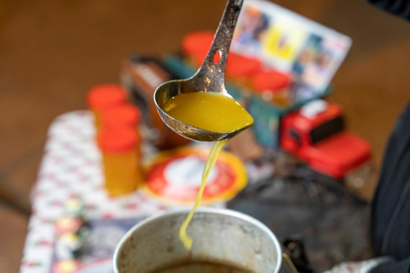 وعُرفت نعمة العنزي “أم مشعل”، وهي سيدة من الجوف بصناعة السمن البلدي، ونجحت بأن تصنع من يدها منتجا فاخرا يحقق لها ولأسرتها عوائد مجدية، حيث استعرضت طريقة إنتاج السمن البري الذي يمر بالعديد من المراحل، وتعرفه بأنه دهن مستخرج من زبد الغنم أو البقر بطرق تعرف في السابق، وله استخدامات متنوعة، ويفضله الكثير بديلاً عن السمن المهدرج، لكونه لا يحتوي على مواد حافظة أو مواد غير صحية.