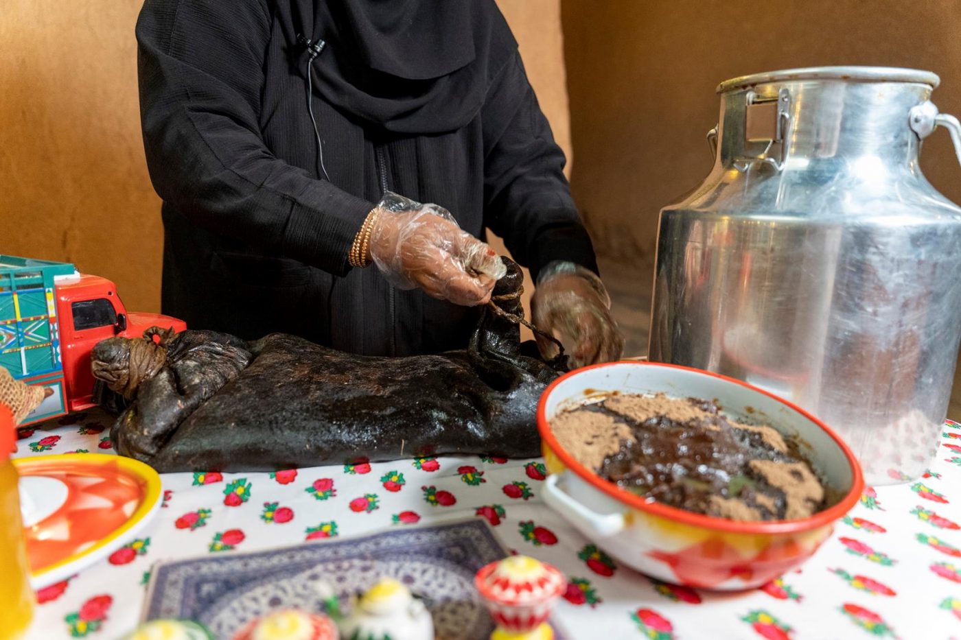 وبينت أنه بعد تلك الخطوات يتم تبريد السمن ثم يحفظ في وعاء يسمى “النحو” وهو الوعاء المصنوع من جلد الغنم، ويتم استخدام السمن في إعداد الأطعمة والمأكولات المتنوعة الشعبية والحديثة كالمقشوش والجريش والمرقوق والمصلي والبكيلة وغيرها الكثير.