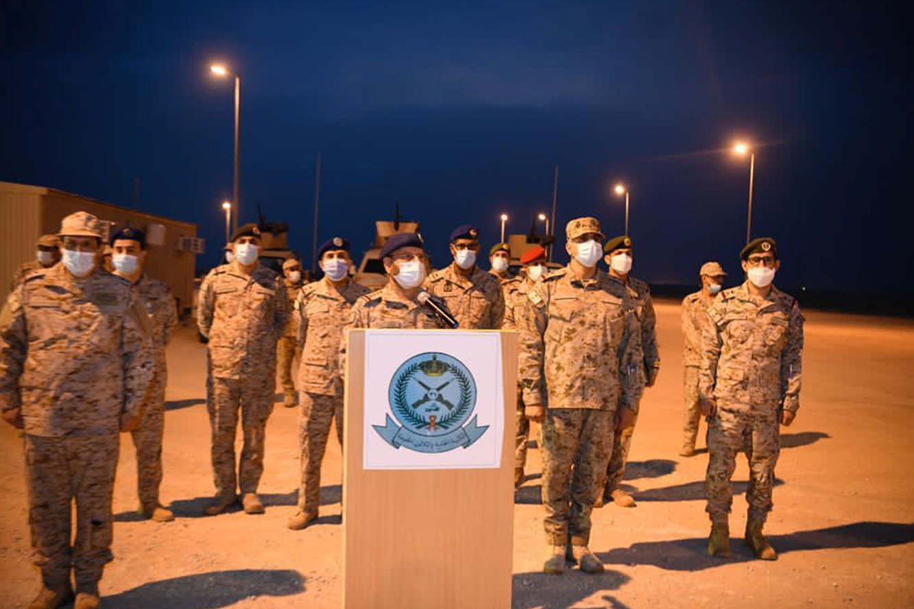 وقال الفريق الأول الركن فياض الرويلي في كلمة ألقاها أمام الضباط وضباط الصف من الوحدات المتقدمة المتواجدة بالمنطقة: “يشرفني أن انقل تحيات وتبريكات خادم الحرمين الشريفين الملك سلمان بن عبدالعزيز آل سعود القائد الأعلى لكافة القوات العسكرية، وصاحب السمو الملكي الأمير محمد بن سلمان بن عبدالعزيز آل سعود ولي العهد نائب رئيس مجلس الوزراء وزير الدفاع -حفظهما الله- بمناسبة شهر رمضان المبارك”.