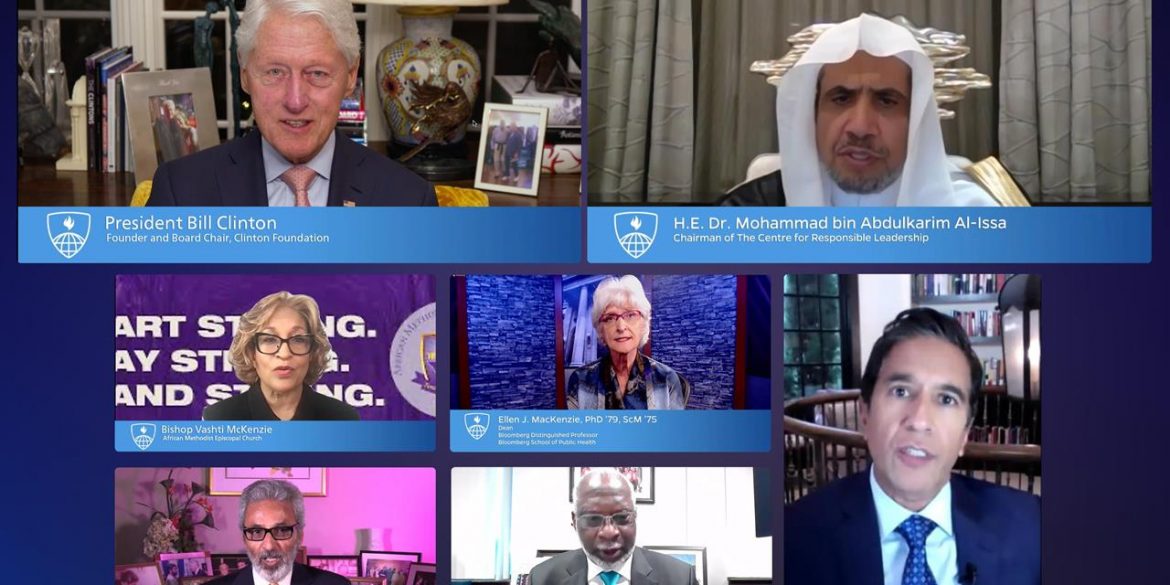 عقد مركز القيادة المسؤولة ومؤسسة بيل كلينتون وكلية جونز هوبكنز بلومبيرغ للصحة العامة، عبر الاتصال المرئي، ندوةٌ دولية لرموز دينية وعلمية لمناقشة سُبُل مكافحة المخدرات، بمشاركة معالي الدكتور محمد بن عبد الكريم العيسى والرئيس الأمريكي الأسبق بيل كلينتون وعميدة الكلية الدكتورة إيلين ماكينزي.