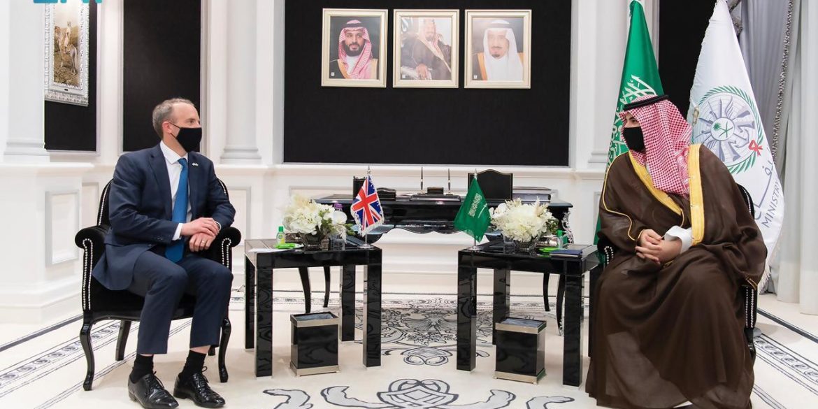 بحث صاحب السمو الملكي الأمير خالد بن سلمان بن عبدالعزيز، نائب وزير الدفاع، خلال لقائه بوزير خارجية المملكة المتحدة دومينيك راب، اليوم الأثنين، العلاقات الثنائية المتميزة بين المملكتين الصديقتين، في إطار الشراكة الإستراتيجية، و سُبل تعزيزها وبالأخص في الجوانب الدفاعية.