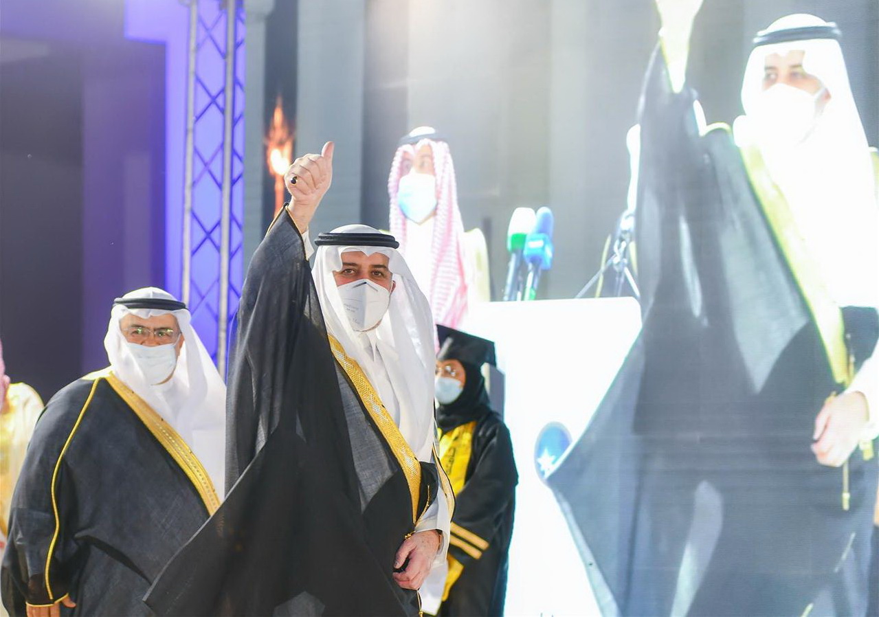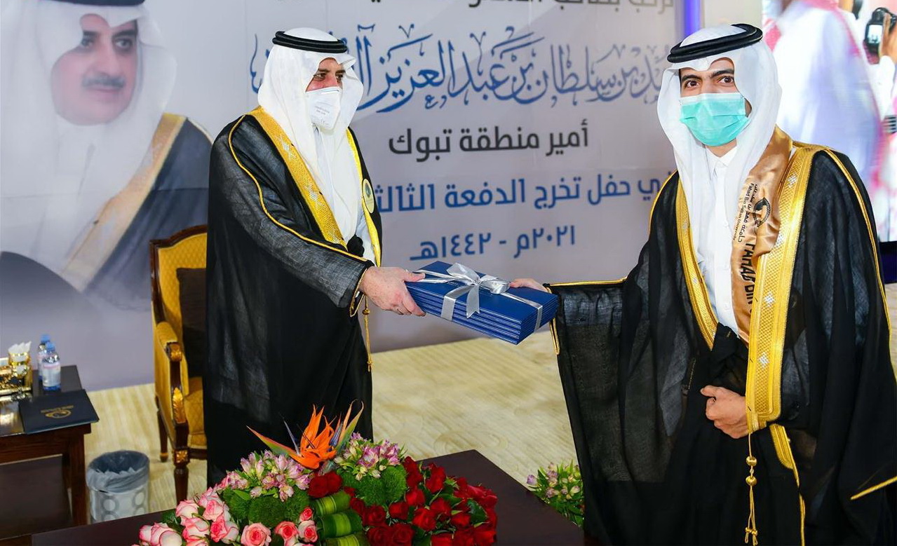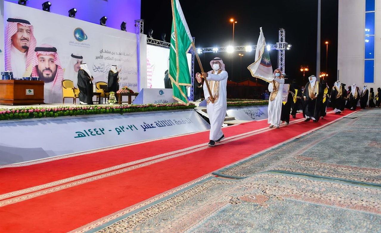 رعى صاحب السمو الملكي الأمير فهد بن سلطان بن عبدالعزيز أمير منطقة تبوك رئيس مجلس أمناء جامعة فهد بن سلطان مساء أمس حفل تخريج الدفعة الـ 13 من طلاب وطالبات الجامعة من حملة درجة البكالوريوس، والدفعة الثامنة من حملة الماجستير للعام الجامعي 1441 /1442هـ، والبالغ عددهم 465 طالب وطالبة، حيث كان في استقبال سموه لدى وصوله لمقر الجامعة رئيس الجامعة الدكتور محمد بن عبدالله اللحيدان.