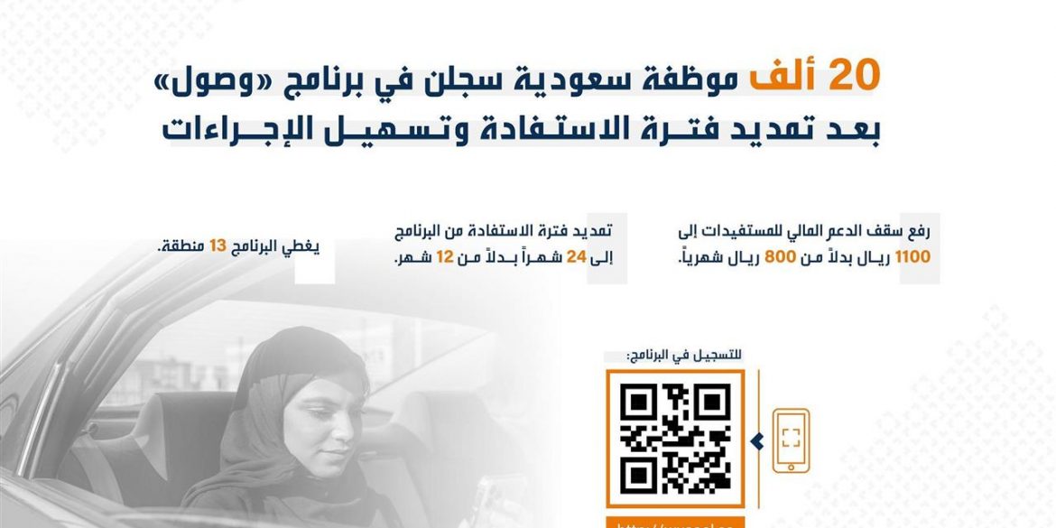 يشار إلى أن برنامج دعم نقل المرأة العاملة “وصول” يهدف إلى إيجاد حلول للتخفيف من عبء تكاليف النقل عن السعوديات العاملات في القطاع الخاص، وتحسين وتطوير بيئة نقل المرأة من وإلى مقر العمل، وذلك من خلال تأمين خدمة المواصلات بشكل آمن وذي جودة وسلامة عاليتين للمرأة العاملة، من وإلى مقر العمل، بالشراكة مع شركات توجيه مركبات الأجرة الخاصة من خلال التطبيقات الذكية المرخصة.