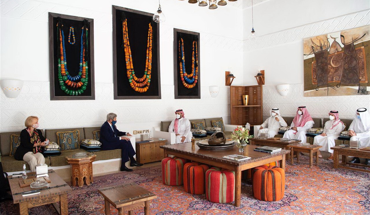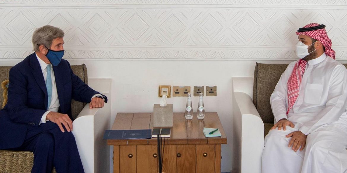 التقى صاحب السمو الملكي الأمير محمد بن سلمان بن عبد العزيز، ولي العهد نائب رئيس مجلس الوزراء وزير الدفاع، في الرياض، اليوم، معالي مبعوث رئيس الولايات المتحدة الأمريكية لشؤون تغير المناخ السيد جون كيري وجرى خلال اللقاء استعراض الجهود الدولية المبذولة لمواجهة ظاهرة التغير المناخي.