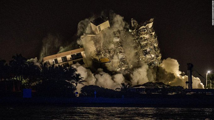 بالنسبة لرئيس بلدية فلوريدا فانه كان من “الضروري هدم المبنى بطريقة مضبوطة لتوسيع” عمليات البحث لأن الفرق لم تتمكن من التقدم بسبب خطر حدوث المزيد من الانهيارات.