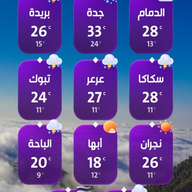 وأشار التقرير إلى أن حركة الرياح السطحية على البحر الأحمر ستكون شمالية غربية الى غربية بسرعة 18-40 كم/ساعة تصل الى 45 كم/ساعة على الجزء الجنوبي، وارتفاع الموج من متر إلى متر ونصف تصل الى مترين على الجزء الجنوبي، وحالة البحر متوسط الموج، فيما تكون حركة الرياح السطحية على الخليج العربي شمالية الى شمالية شرقية بسرعة 15-40كم/ساعة، وارتفاع الموج من متر إلى متر ونصف، وحالة البحر خفيف إلى متوسط الموج.