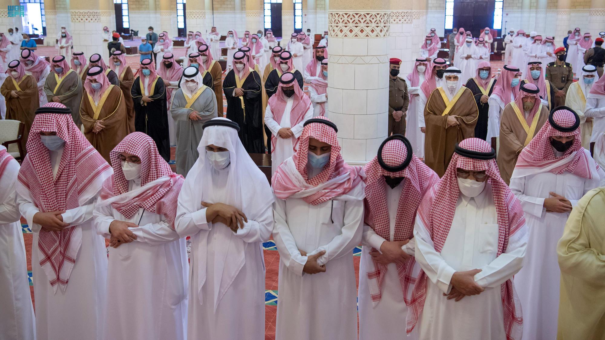وأدى الصلاة مع سموه سماحة مفتي عام المملكة رئيس هيئة كبار العلماء الرئيس العام للبحوث العلمية والإفتاء الشيخ عبدالعزيز بن عبدالله آل الشيخ, وصاحب السمو الملكي الأمير منصور بن سعود بن عبدالعزيز, وصاحب السمو الملكي الأمير متعب بن عبدالله بن عبدالعزيز, وصاحب السمو الملكي الأمير الدكتور منصور بن متعب بن عبدالعزيز وزير الدولة عضو مجلس الوزراء مستشار خادم الحرمين الشريفين, وصاحب السمو الأمير نواف بن عبدالله بن محمد بن عبدالرحمن, وصاحب السمو الأمير عبدالله بن فيصل بن تركي, وصاحب السمو الملكي الأمير سعود بن نايف بن عبدالعزيز أمير المنطقة الشرقية, وصاحب السمو الملكي الأمير سلطان بن سلمان بن عبدالعزيز المستشار الخاص لخادم الحرمين الشريفين, وصاحب السمو الملكي الأمير خالد بن طلال بن عبدالعزيز, وصاحب السمو الملكي الأمير فيصل بن خالد بن عبدالعزيز مستشار خادم الحرمين الشريفين, وصاحب السمو الملكي الأمير نهار بن سعود بن عبدالعزيز, وصاحب السمو الأمير أحمد بن عبدالله بن عبدالرحمن محافظ الدرعية, وصاحب السمو الأمير سعود بن عبدالله بن ثنيان.