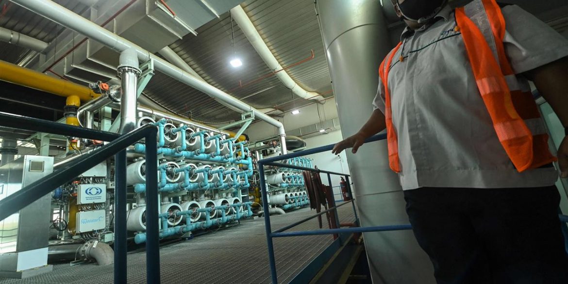 يعلو هدير مضخات عملاقة داخل محطة متطورة لمعالجة مياه الصرف الصحي في سنغافورة، إذ تحوّل الدولة المدينة الواقعة في جنوب شرق آسيا جزءاً متزايداً من هذه المخلفات إلى ماء صالح للشرب ما يسهم في تقليص مستويات التلوث البحري.