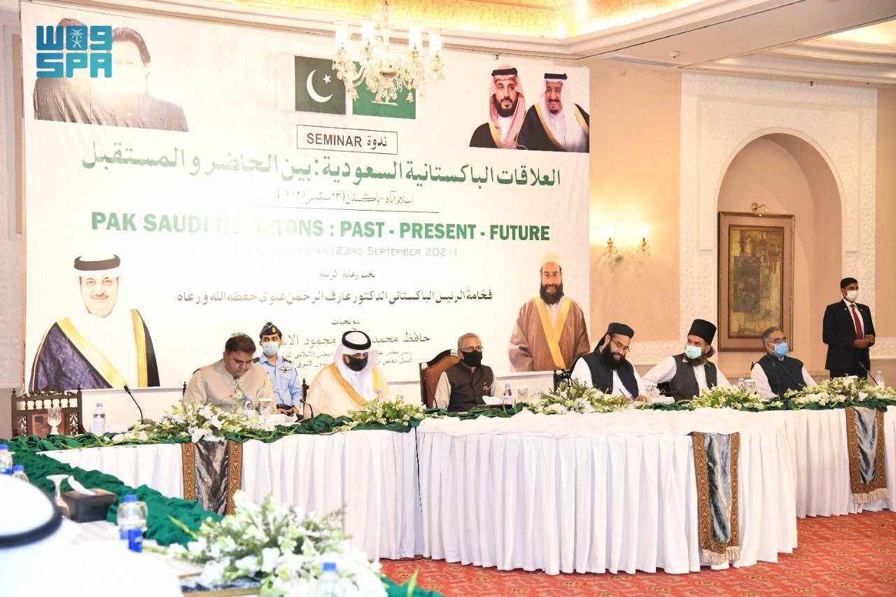 وأشاد فخامته خلال رعايته مؤتمر (العلاقات السعودية الباكستانية بين الحاضر والمستقبل)، بالدور الريادي للمملكة في حل قضايا الأمة الإسلامية والمسلمين حول العالم، مشيراً إلى أن المملكة وباكستان تتمتعان بتوافق الرؤى على الأصعدة الإقليمية والدولية كافة.