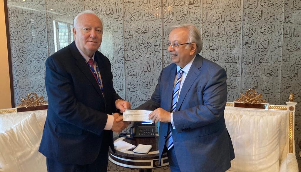 حضر تسليم مبلغ الدعم نائب مندوب المملكة الدائم محمد بن عبدالعزيز العتيق ومدير مكتب المندوب الدائم فيصل بن ناصر الحقباني.