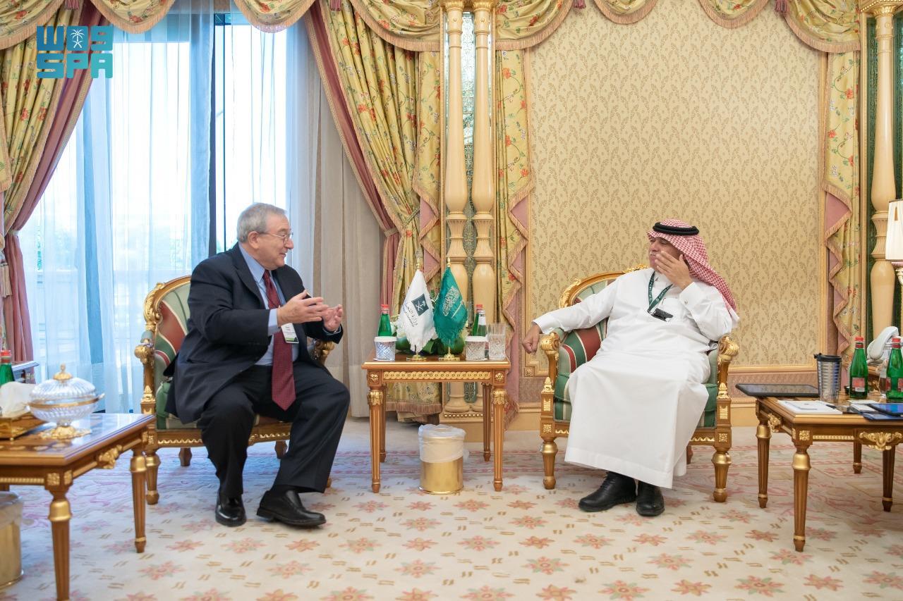 كما التقى معاليه بعدد من مسؤولي الشركات العالمية المتخصصة في مجالات الاتصالات وتقنية المعلومات، والذكاء الاصطناعي، والترفية، والاستثمار والتمويل، وهم: نائب رئيس شركة هواوي العالمية هو تاو، بحضور الرئيس التنفيذي لشركة “هواوي تك إنفستمنت العربية السعودية المحدودة” إريك يانغ، ورئيس قسم العمليات في فايف هندرد غلوبال الأمريكية كورتني بويل، ومؤسس وشريك عام بشركة Formulate Ventures الأمريكية مورغان لاي، ومنتج الأفلام الأمريكي، ومؤسس ورئيس Entertainment Media Ventures سانفورد كليمان، ورئيس معهد بريكروت للطاقة بجامعة ستانفورد الأمريكية البروفيسور يي كوي، والعضو المنتدب في شركة أزور إستراتيجي البريطانية الدكتور نيل كويليام، ونائب رئيس المجموعة ورئيس الأعمال الدولية في شركة Sense Time الصينية جورج هوانغ.