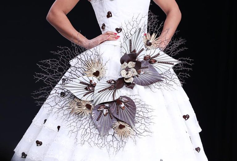 ولفت الأنظار، خلال حفل الافتتاح، تصميم مستوحى من لوحة “جورنيكا” للفنان الشهير “بابلو بيكاسو” عبارة عن فستان نصف شفاف مطرز بالشوكولاتة، يزن 12 كيلو جراما.